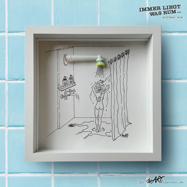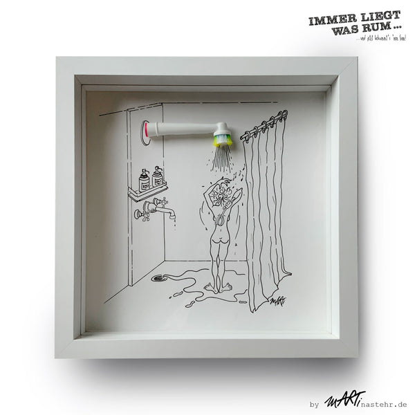 • Handgezeichnetes Kunstwerk im Rahmen mit 3D-Objekt (hinter Glas) versehen