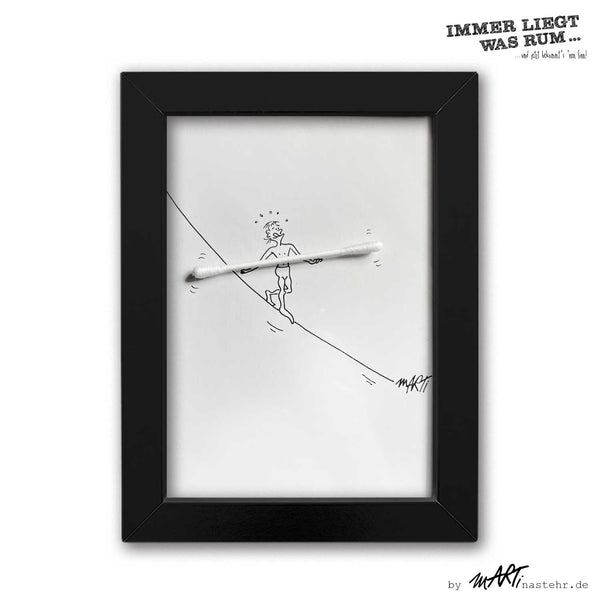 ILWR "Wattestäbchen", handgezeichnete Kunst im Rahmen (mit 3D-Objekt)